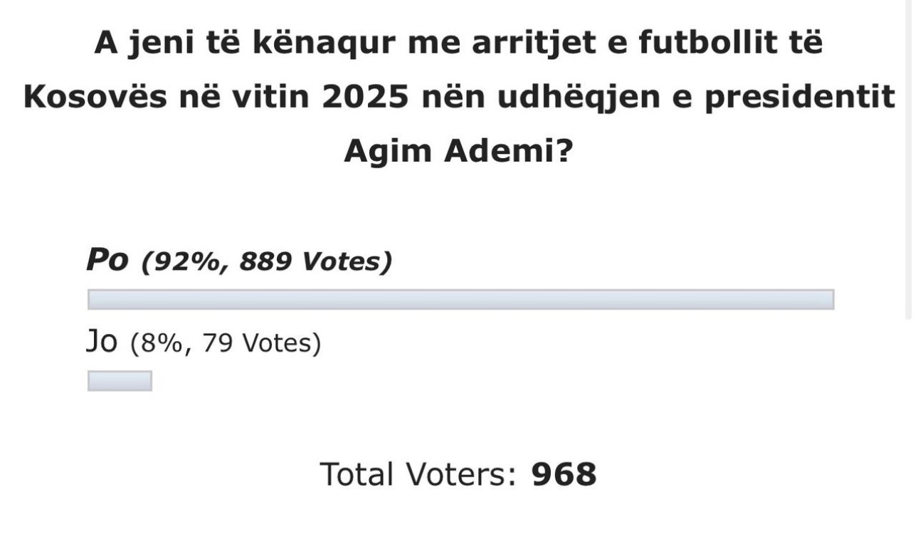Ky rezultat dëshmon qartë besimin e madh të opinionit publik ndaj drejtimit të Agim Ademit dhe progresit të vazhdueshëm të futbollit kosovar në arenën vendore dhe ndërkombëtare.