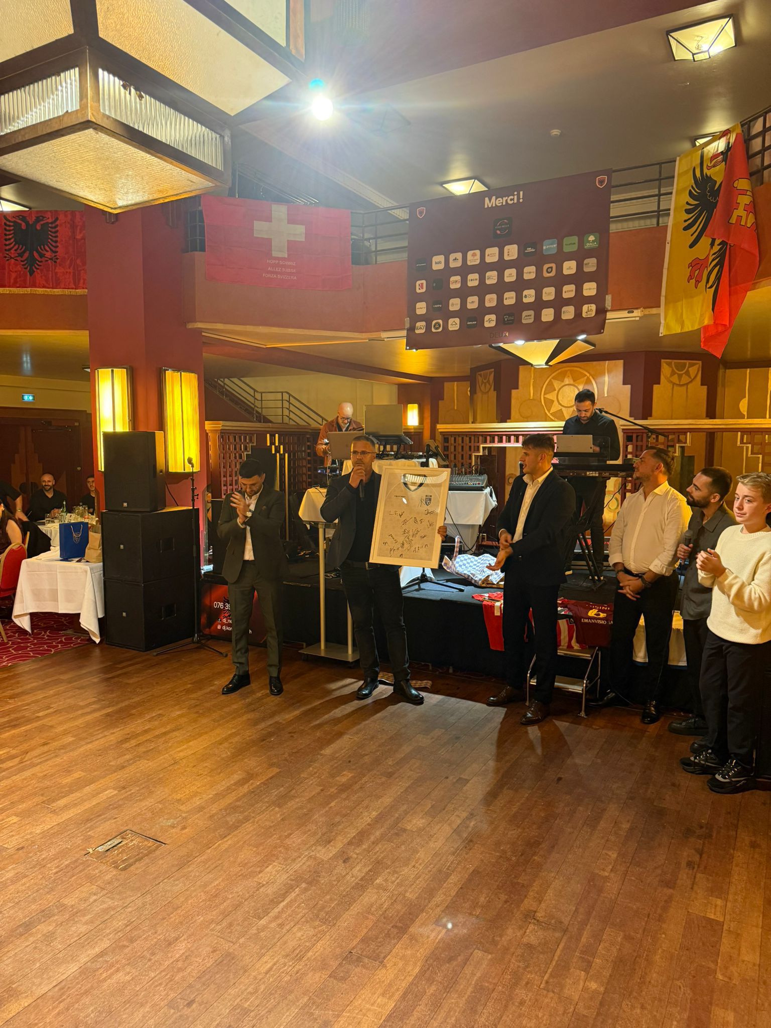 Qershia mbi tortë dhe ankandi i fundit i mbrëmjes ishte ajo e Kombëtares së Kosovës e cila filloi në shitje me një çmim nga 5 mijë franga e që pas disa tentimeve nga të tjerët në fund, me një çmim rekord e bleu afaristi nga Gjeneva z. Reshat Selmni.